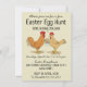 母親おもしろいの鶏の夫にことわざの漫画とイースター卵狩り招待状:"子供たちを隠す時間。 イースターの時間で、彼女はイースターの卵の飾狩りのために生まれていない雛のために。自分のパーソナライズされた文字で。おもしろいと可愛い茶色のチキンイースター卵の漫画スケッチアートデザイン。スケッチバイアイロニーデザイン。All Rights Reserved.