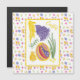大きなカラフルなイースターエッグと小さな鳥、太陽、ムラサキハナダイコンをオリジナルオイルパステルで描いたイラスト。 「イースターおめでとう」のテキストとイースターの花柄フレームをカスタマイズ可能。 裏面はイースターパターン枠と隅に小さな水仙のイースターイラスト付きのテキストスペースが空白です。