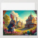 モチーフは、前景に優雅なウサギがいる童話のようなイースターの風景を示しています。彼は青いジャケットを着て、カラフルに飾られたイースターの卵に囲まれた小道に座っています。花のアーチがシーンをフレームし、それが魅力的な家々、塔、そして教会がある牧歌的な村に溶け込んでいます。暖かな夕方の太陽がすべてを金色の光で包み込み、魔法のような神秘的なイースターの雰囲気を生み出しています。