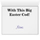 おもしろいを釣ったり楽しむ人のためのイースターカード。このデザインは大きなタラの魚が尾と耳をフワフワに巻いている。名前をプリントしたり、手離れで署名する空白のことができる。Designed by Sheila Cicchi, Brownielocks.com, All Rights Reserved.