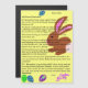 イースターパーソナライズされたバニーからの手紙。黄色の背景。緑、青、紫の卵を持つかわいい茶色のバニー飾ラバギ。手紙はイースターバニー自身によって署名されている!大きなピンクの耳と鼻と口、白い歯と毛の多い綿毛を持つキュートな茶色のウサギ飾は、カラフル青卵、緑の白い卵と緑の花と紫の卵と春ミントの緑の背景に緑の文字を付けかわいらした。手紙は女の子に宛てたものだ(男の子の言葉を女の子に置き換えるためだ)。文字の体内の各名、月、年、故郷などに個別に入力し書て文字をパーソナライズし、ショッピングカートに追加。手紙は注文顧客に「発送」される。イースターの時間が近づくと、単にスタンプを追加し、封筒に挿入し(フェスティバルA7 1/4" W x 5 1/4" Hイースターの封筒にカラフルイースターバニーのオフィシャルメールの円が印刷され、追加の「信じおもしろい」のために)、イースターバニーから子供に封筒を郵送する。(シーッ!もちろんイースターバニーからメールで届け与えた!)イースターの前に少なくとも2週間の間に手紙が受信者に到着するのに十分な時間を自分で確保すること楽しむ!またはもし、最後の分に手紙を注文(イースターバニー離れは彼らのイースターバスケットの中で彼らの手紙を受け取ることができる)。子供たちは冷蔵庫、イーゼルなどに表示するためにイースターバニーからの磁気文字を愛する。素敵な形見の手紙と素晴らし家族の伝統!すべての年齢の子供たちは、イースターバニーがメールの年々で特別な"新しい手紙"を送ることを楽しみにしている!注意:もし文字全体を独自の文言でパーソナライズし、私の文言を削除し、アート内の宇宙秋が安全な赤い行でプレビューされることを確認する選択を選択しま点々のあるす(安全な行に収まるようにメッセージバーで区切る必要がある場合がありま縁どす)。オリジナルのアートワーク、詩デザインCopyright © 2013-2016 TamiraZDesigns.