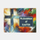 十字架とイースターの卵とカラフルの背景を持つイースターの恵み、このドアマットはクリスチャンのための美しい贈り物を作る。