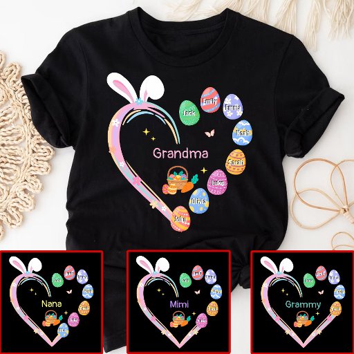 イースターラビットハートイースターエッグおばあちゃん家族の名前 Tシャツ