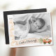 甘いベビー写真の発表とイースターの挨拶すべて1つで!積み上げた卵の上に年を縁ど加え離れる。写真は右。下の写真は、ニンジンの車に乗っ運た愛らしいクリーム色のラビットです"イースター恵み"のバナーである。イースター・パーティー・コレクションから。