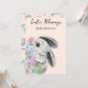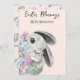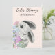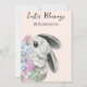 イースター恵み引用文可愛い好奇心バニー隠れブルー&薄紫花ピーチ復活祭のホリデーカード。