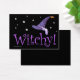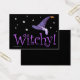 リンダ・ベイシンガー・ペックの魔女の帽子デザイン、星と紫の文字と"ウィッチー読ィ!"を持つ。 自分の文字を背面に追加して、パーソナライズする。© Linda Baysinger Peck All Rights Reserved