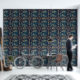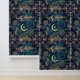 トレンディー、魔法の金ゴールド夢のキャッチャー花の花のパターンは、部族の羽毛、金ゴールドの花、幾何学的な花、月、太陽と星、円、ドット、正方形、三角形、山形ジグザグ、幾何学的な形状、保護の目を持つグリッターは、黄色のと銀のドットで作ら輝くれ、真夜中の青、濃い青グラデーション星空のののグローのの背景。このトレンディー、神秘的、部族的、ファッショナブル、ファンタジーイラストレーション、ボヘミアンガーリーデザインは、毎日の衣服、ホームデコール、お祝いや特別な日テーマ装飾に最適である。