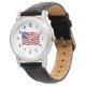 アメリカクラシック国旗を持つブラックレザーウィメンズウォッチデザイン