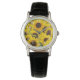 ウィメンズブラックレザーストラップ時計のひまわり 腕時計