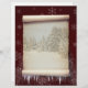 雪景色の古い紙の巻物と雪の赤い背景飾に、雪や氷柱が積もった冬のパーチメントイラストレーション。