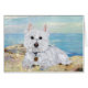 柔らかい桃とターコイズの海は、この西ハイランドホワイトテリアの美しい背景を提供するビーチの外出!友達に挨拶を送るウェスティースタイルと美しいと色!すべての販売はウェスト・ハイランド・ホワイト・テリア・レスキューをサポート!