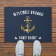 ようこそ航海の金ゴールドいかりネイビーブルーボートドアマット。