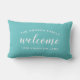単にスタイリッシュlumbar装飾用クッション機能モダン白の"ようこそ"スクリプトの文字とカスタムあなたの家族の姓モノグラムとあなたの通りアドレスと一緒に可能な文字アーチ付きパーソナライズされた。前面と背面の両面デザインを含む。白い文字とアクア/ターコイズの青い背景を修正してホームデコレーションに合わせる。