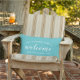 ウェルカムアクアブルーパーソナライズされたファミリー名アドレス アウトドアクッション