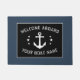 "ようこそ船"とあなたのボート名または他の望ましい文字と素敵なDoormatカスタム、黒と明るい青のグレーに星を付けたヴィンテージいかりを設計した。現在の色やテーマに合わせて簡単にカスタマイズ可能。
