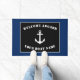 ウェルカムアボード船の名前クラシックいかりネイビー ドアマット