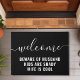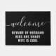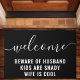 ようこそ子供は暗い家族おもしろいの黒と白のdoormatである。ようこそ夫の子供の警戒は陰気な妻カッコいいである。