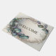 ようこそ緑の紫葉の素朴エレガントのDoormat。美ユニークしいスタイリッシュデザイン簡単パーソナライズされた。フォントスタイル、サイズ、色を変更できる。一致するアイテムが使用可能。