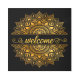 このエレガント金ゴールドトーンマンダラ歓迎の看板はあなたの家にゲストを歓迎する豪華なアクセントを追加する。黒い背景は、あなたの装飾またはデザインスタイルに合わせて変更することができる。