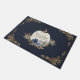 「ウェルカムファミリー秋カボチャ葉ブルーフローラフロントドアマット。 海軍と埃っぽい青いフローラのデザインでエレガント、この素敵で秋の葉と家族と友人を歓迎。濃厚なダークネイビーのキルティング模様の背景に、対照的な白いカボチャを取り付ける。この作品は絵を描、国際的にライセンスを受けたアーティストでデザイナーのオードリー・ジャンヌ・ロバーツが著作権を持つ水色で制作した。