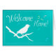 この特別カードを遠くに持っていた人に挨拶しなさい。おかえりなさい!..白い鳥のシルエットが幸せそうに歌っている。