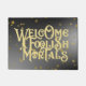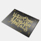 屋外アクセントデコを製ドアマカスタムットで強化する。ようこそ愚かなおもしろい引用文スカルゴーリッシュデザインドアマット。黒と金ゴールドと金ゴールドグリッター紙吹雪。ハロウィン素晴らしのギフトアイディア。