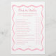 ブライダルシャワーゲームの下でパーソナライズされた、この波状ピンクの上におもしろいをブライダルシャワーゲームに追加,結び目ブライダルシャワーテーマを結ぶまたは結び目ブライダルシャワーアイディアに最適。このゲームは、弓ブライダルシャワーテーマを補完しスタイリッシュて、弓パーティー用の弓をテーマにしたブライダルシャワーアイディア魅力的を提供する。市場祝外でブライダルシャワーテーマと愛は忘れられない思い出を作るために開花ブライダルシャワーテーマにある!
