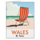 ウェールズ美しいウェールズの砂のビーチのデッキチェアの列車のヴィンテージ旅行ポスターストライプの。