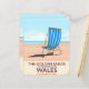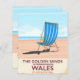 ウェールズ・ペンブロークシャーの黄金の砂浜 ビンテージの旅行ポスター。浜辺のデッキチェア