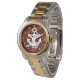白い船のいかりのグラフィック画像が木の背景フェイクに置かれる。白いローマ数字はのまわりに顔の端に配置される。