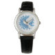 女性の時計は、宗教的な鳩のプリントと黒い革のストラップで示されている。こカスタマイズの時計は買まに見える。ライセンスされたイメージ