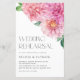 招待状ゲストは、このカスタマイズ可能なリハーサルのディナー招待であなたのイベントに。ピンクのダリアの花の水色フローラ花束を備えている。詳細を追加してパーソナライズこのフローラリハーサルのディナーの招待は、春と庭園の結婚式に最適である。