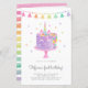 水カラーレインボーユニコーンケーキファースト誕生日招待状 |とフェスティバルカラフルの誕生日の招待は、タッセル、ピンホイール、星のアクセントとキュートな紫色のユニコーンケーキを特徴とする。このユニコーンの招待は完璧子供へな誕生日パーティーだ。独自の詳細を追加してパーソナライズ一致するアイテムが使用可能。
