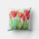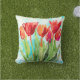 ウォーターカラーレッドチューリップオンアクア装飾用クッション アウトドアクッション