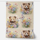 水彩のウッドランドの動物は毛皮の茶色のテディベア、パステルワイルドフラワー、テクスチャクリームの背景に蝶。