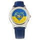 ウクライナの国旗、ウクライナの色のハート、およびウクライナの文字ことわざ"栄光ウクライナ"で見る