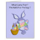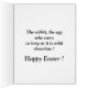 バニーのウサギおよび卵がこの休日になぜの一緒に投げられるか-それが思考の中のチョコレートである限りおもしろいの教育イースターカード