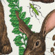 手描きのウサギや森林フローラシダ、キノコやベリー、バグ
