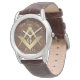 金ゴールドスタイリッシュスクエアとコンパス木製の時計パーソナライズされた顔とマソフェイクニックのシンボル時計。
