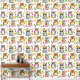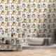 可愛い水色のフクロウと落下する離れイラストレーションの壁紙は、茶色、ピンク、緑、青と黄色。子供の部屋やベビーの子供部屋や森の中のキャビンのロムのために可愛い。
