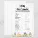 あなたの赤ちゃんシャワーに魅力とおもしろいを追加するための完璧なゲームを探している?「ベビートレイトワードスクランブル」のご紹介!このゲームは可愛いウッドランドの動物で飾られている。答え鍵: 1.クリブ2.おむつ3.おむつ4.ミルク5.変更マット6.カーシート7.ロッキングチェア8.テディベア9.パシファイア10.ローション11.遊本12.ペン13.おむつパジャマ14.式15.おむつバッグ16.ベビーゲート17.スワドル18.ボトル19.フード付きタオル20。ラトル