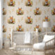 ウッドランド動物ベビーキツネワイルドフラワーオンクリーム 壁紙