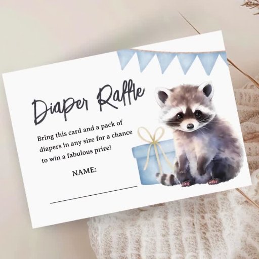 ウッドランド・ラッコンのベイビーシャワー 男の子 青い風船 招待状