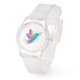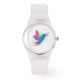 白い背景に明るい虹色の飛んでいるエキゾチックなハミングバード絵を描は、色の上に、水の色数々のの絵を描上に。虹のハミングバード。