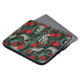 ジャングルのヒョウユニークを特徴とするエキゾチックで熱帯のパターンで、ヤシや葉、赤いバラが対照的な黒い背景の上に。赤鮮やか、黒、緑、ベージュの豊かな色がスタイルと一緒にこのデザインポップ・アートのを作る。ダイヤモンド形状のフレームは、あなたの希望のイニシャルとパーソナライズされたなる可能性のあるモノグラムを囲む。