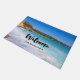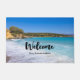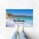 ギリシャ島クレタ島のビーチを特集した写真とウェルカムドormat。美しい熱帯の青いビーチと泡立つサーフィン。素晴らしい静かな旅行先。