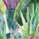 エキゾチック開花水色のサボテン模様 壁紙