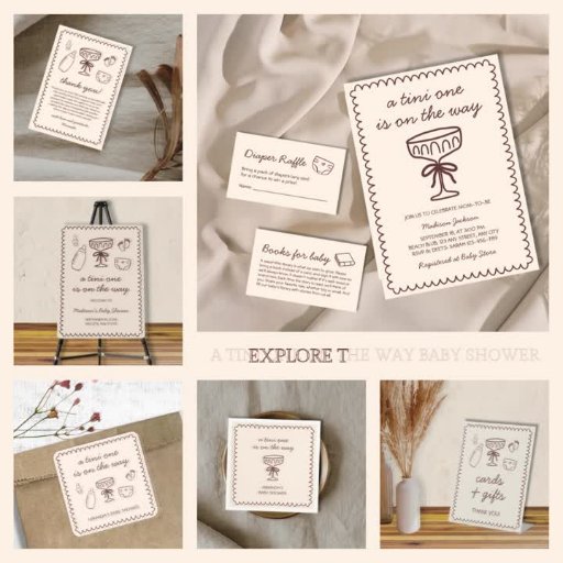 こ祝この「A Tini One Is on the スタイリッシュ way」の赤ちゃんシャワーの招待と一緒にいること!手描きの波状のフレームを特徴としよくはしゃぐて、このシックなデザインはエスプレッソのマルティーニを上品なコケット弓で飾り、トレンディーお祝いに最適モダン。暖かい茶色のカラーパレットと手書きのスタイルフォントは、思い出に残るエレガントイベントのトーンを設定す感じる居心地の良い作り出し。おカスタマイズ客様のイベントの詳細と招待状のゲストと一緒に飲み祝、シャワーのスタイルにお母さん!