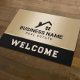 エテ実在ートモダンハウスロゴ黒&金ゴールドのドアマット。