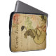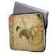 ヴィンテージスタイルラップトップスリーブは、カエルに乗った自転車とピンクのバラフランスのが特徴のヴィンテージフローラはがきのレプリカを持つヴィンテージ愛好家のための素晴らしい贈り物を作る。